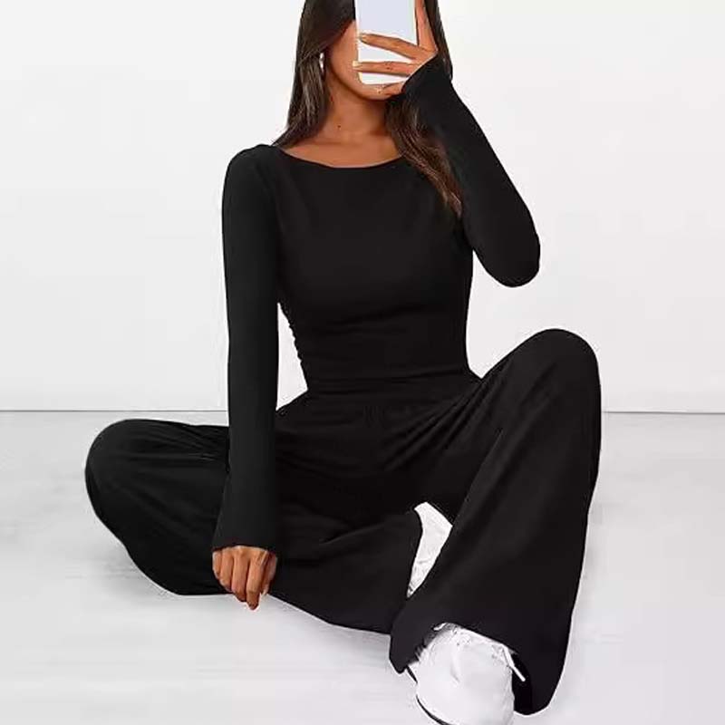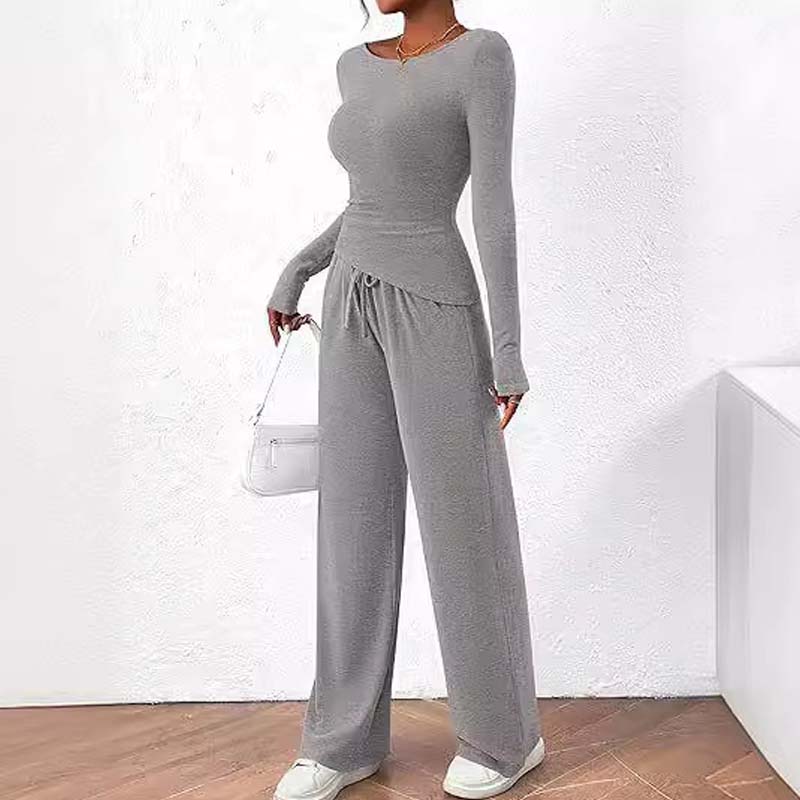 Asymmetrical Long-Sleeve T-Shirt & Wide-Leg Pants Set