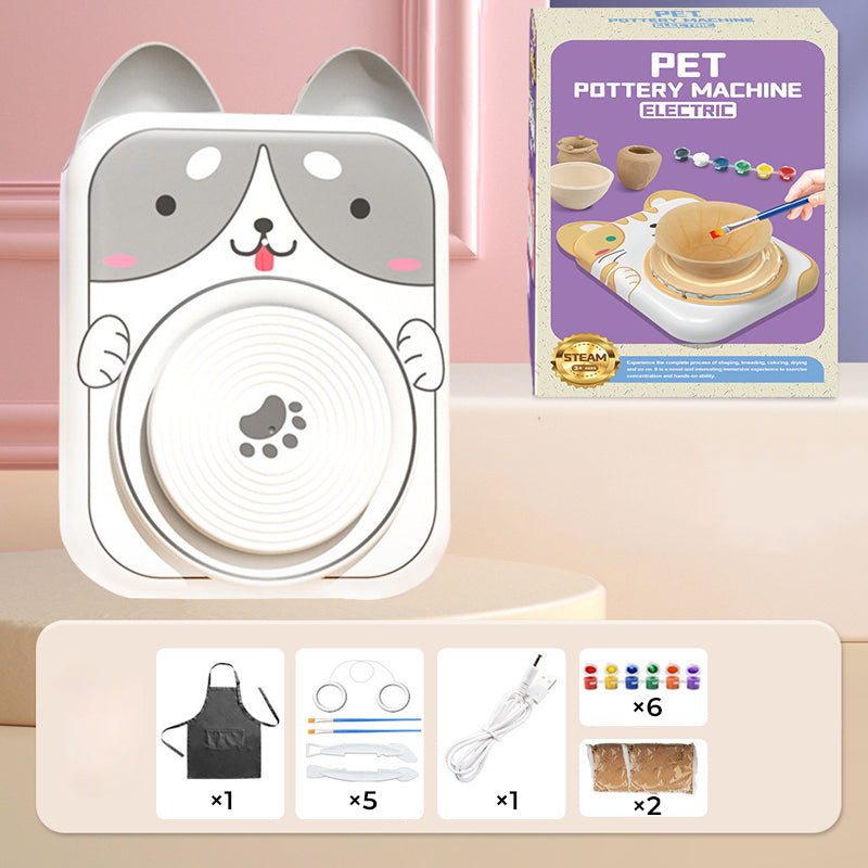 ADORABLE ANIMAL DESIGNS – Featuring cute cat, bunny, puppy, and cow styles, this pottery wheel makes crafting extra delightful! The simple design lets kids start creating instantly—no complicated setup needed. Includes everything for a complete experience.