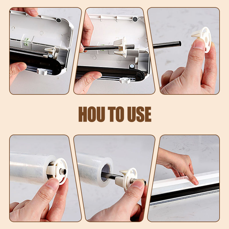Package Includes: 1*Magnetic Plastic Wrap Dispenser With Slide Cutter