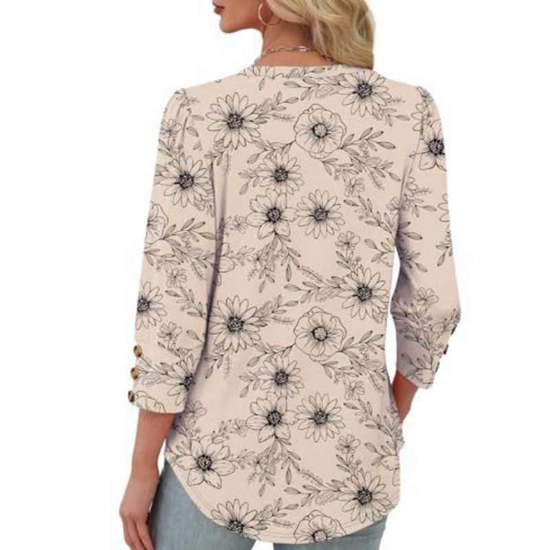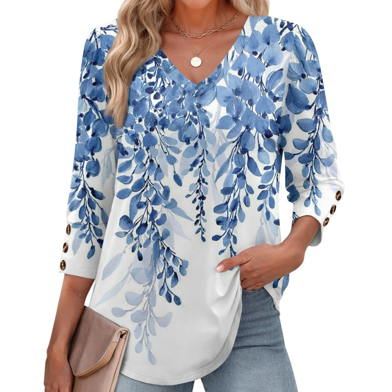 Solid-Color Printed, Elegant Puffy Long-Sleeved Shirt